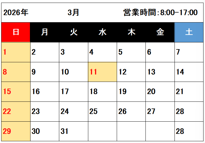 受付時間 8:00~17:00(日・祝日除く)